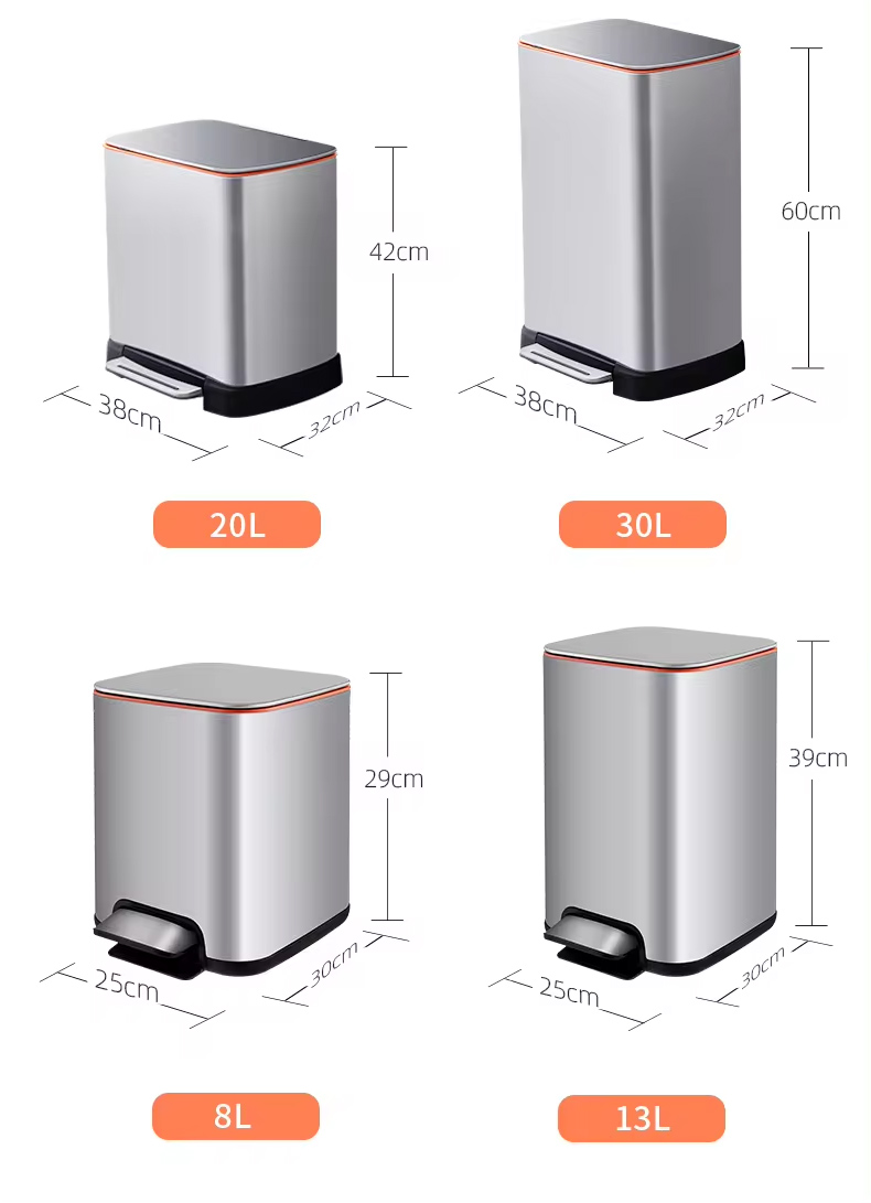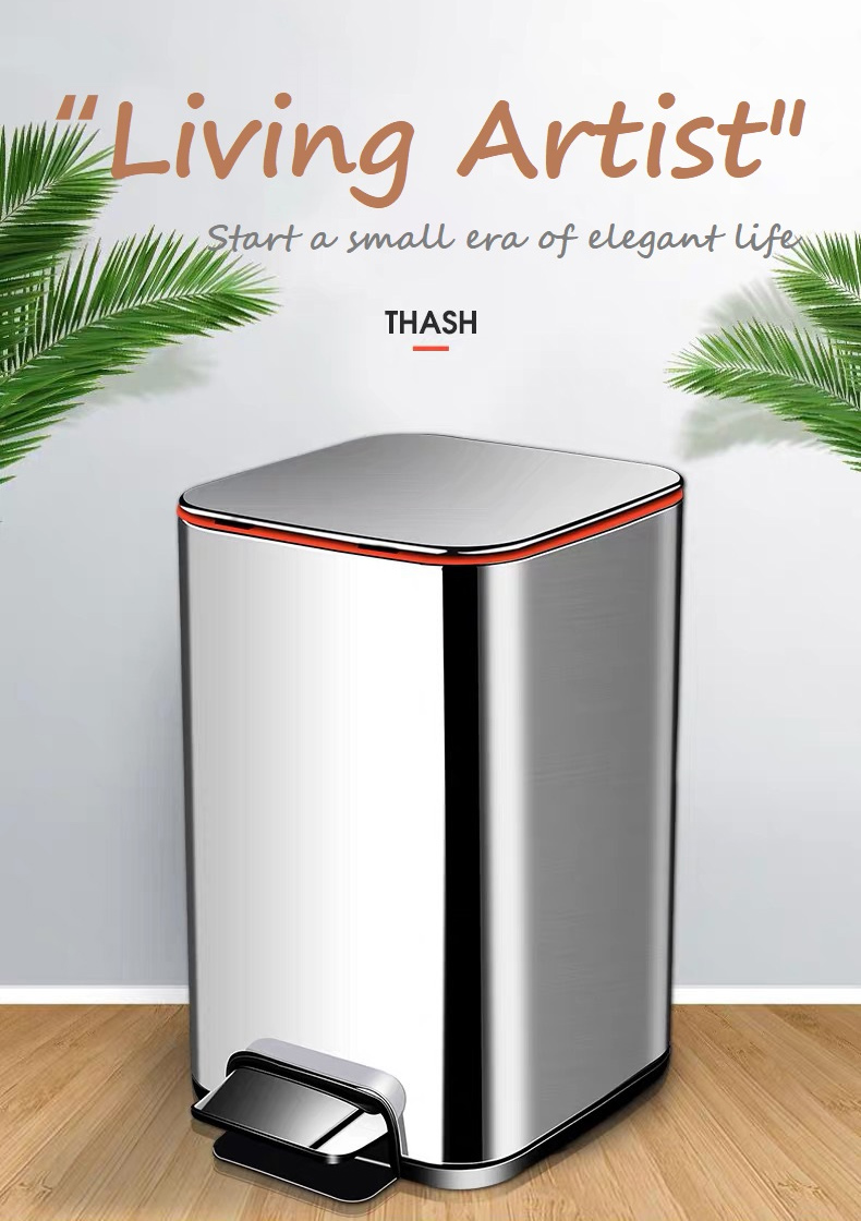 JAH 430 Edelstahl-Quadrat-Mülleimer mit großem Fassungsvermögen und Trittpedal